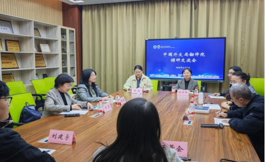 为搭建行业权威机构与高校的深度沟通平台,精准对接翻译人才培养与考试评价需求,2025年11月7日下午,辽宁大学外国语学院与中国外文局翻译院共同召开了翻译人才培养调研交流会。双方围绕CATTI考试相关热点议题展开友好交流与深入探讨,凝聚发展共识。中国外文局翻译院副院长方芬、专家工作部主任张岩,辽宁大学国际交流合作处科长金婧华,外国语学院党委书记张冬宇、院长刘熠、副院长穆重怀及学院骨干教师、翻译专业学生代表出席了会议。调研交流会由刘熠院长主持。